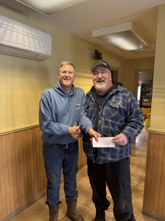 Mark Gotell of Georgetown accepting his 50-50 winnings for the 2026 draw